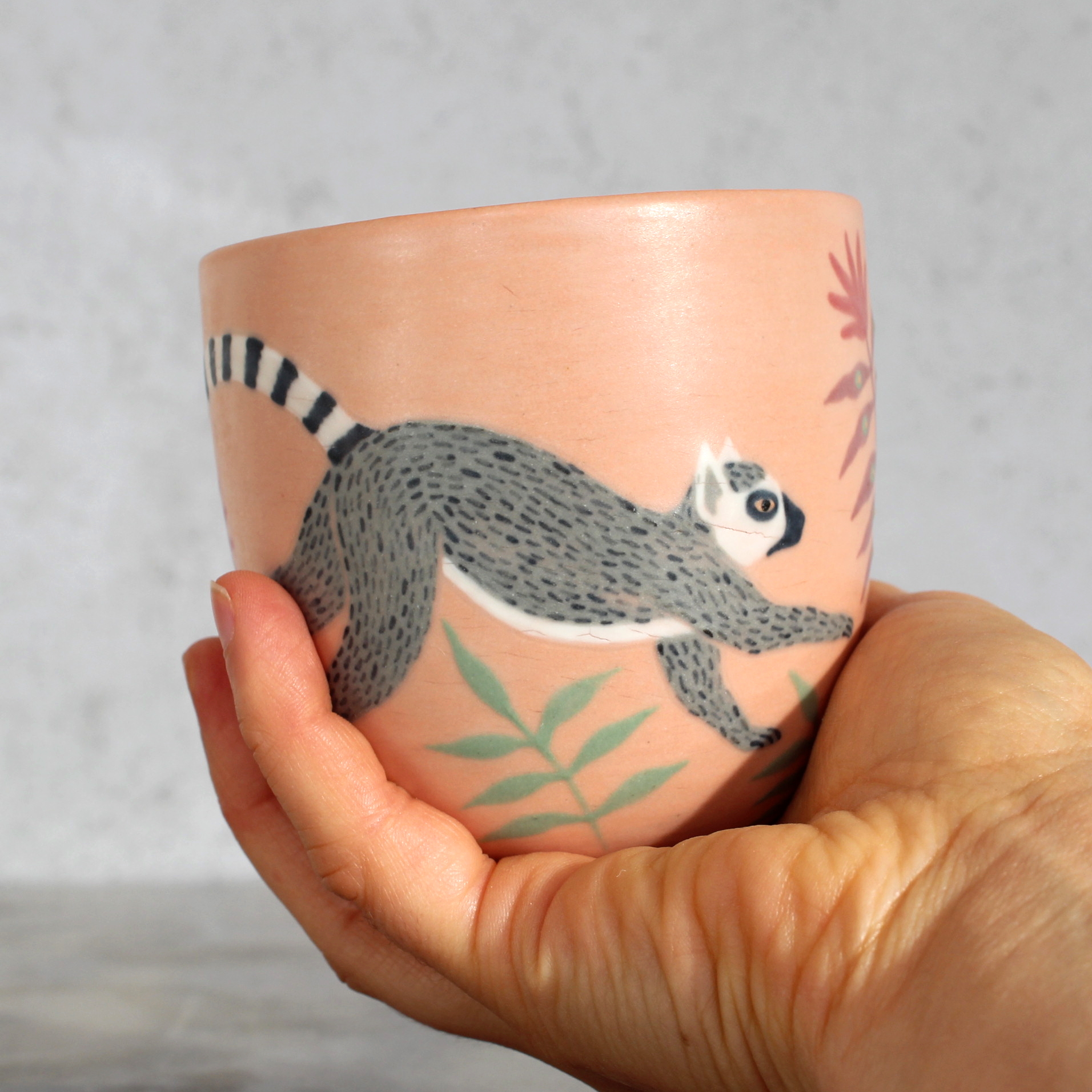 Ce gobelet Lémurien aux couleurs saumonées est une pièce unique.
