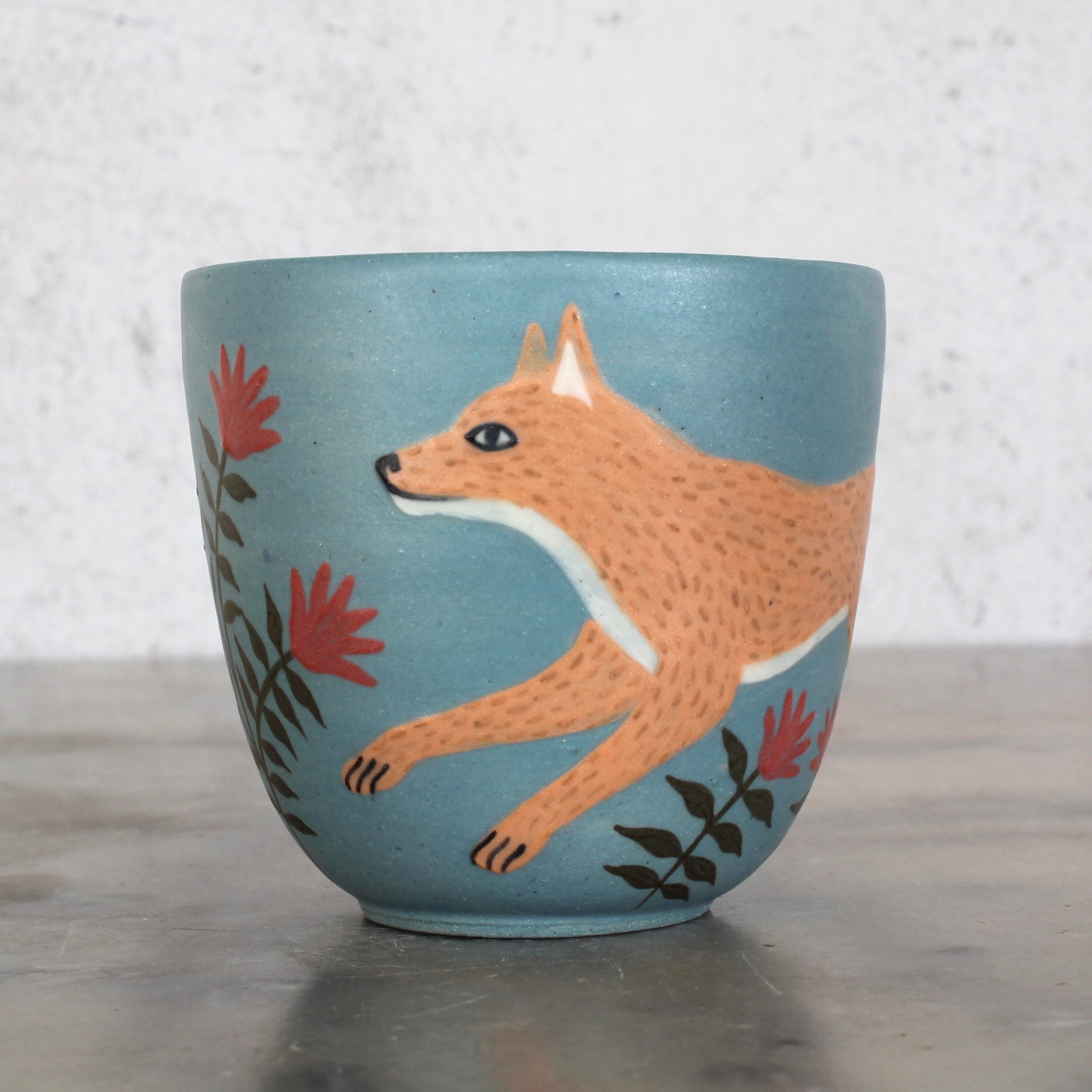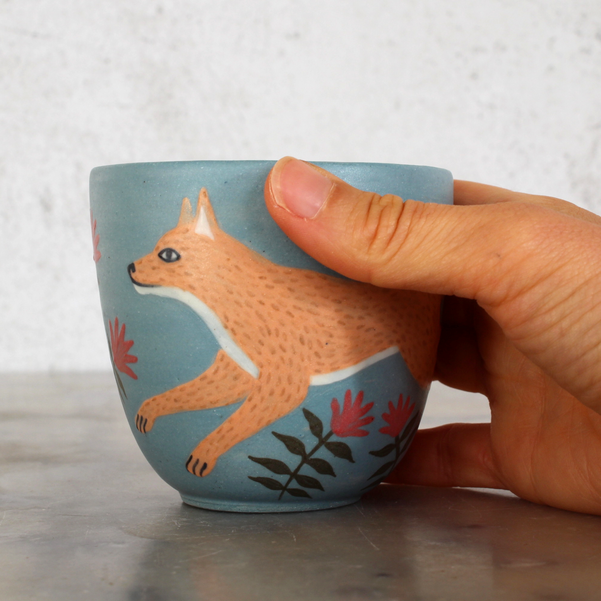 Il est tourné en grès blanc, puis patiemment décoré au pinceau avant d’être cuit deux fois dans un four électrique (980°C puis 1265°C).